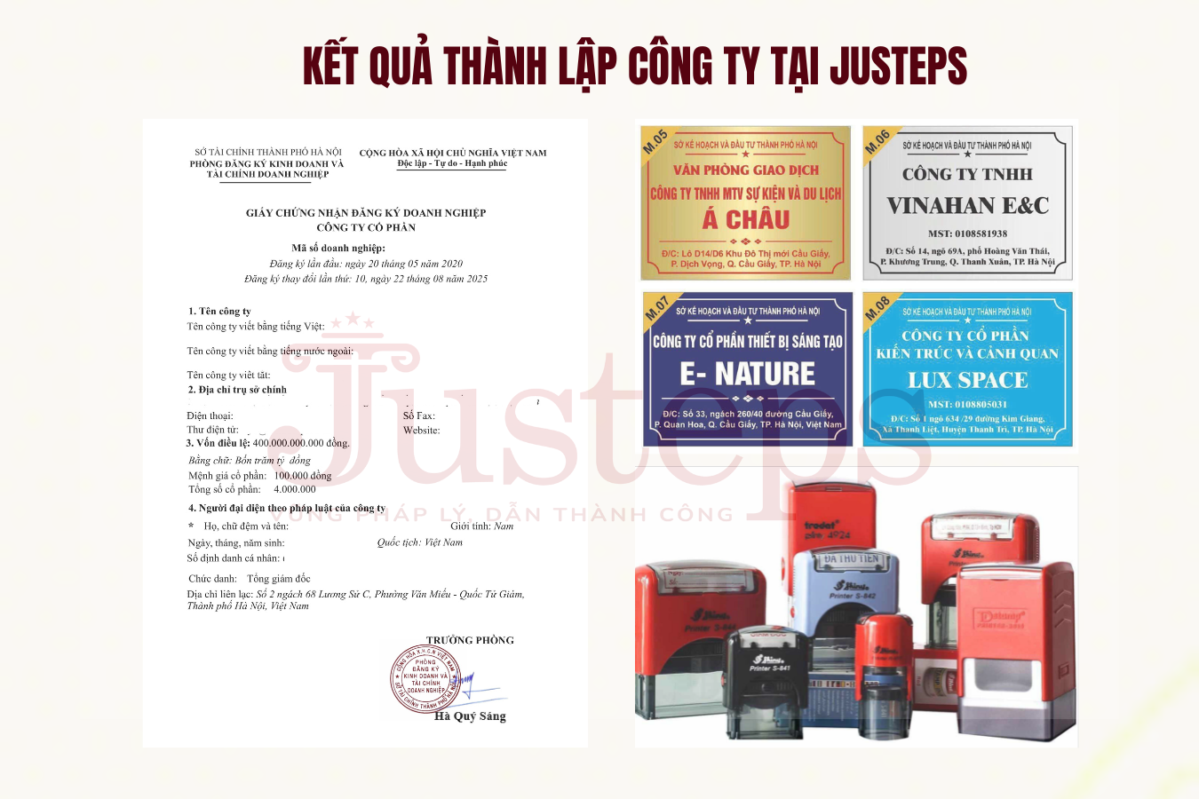 Kết quả sau khi sử dụng dịch vụ Thành lập Công ty tại Justeps